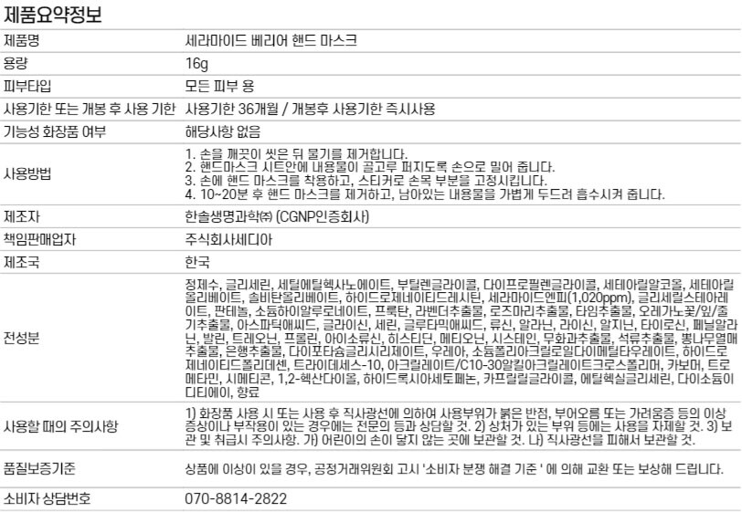 세라마이드 베리어 핸드 마스크